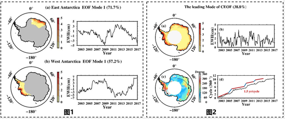 研究成果以“南极冰盖年际尺度质量变化:沿岸偶极子和质量传播”(“Antarctica ice-mass variations on interannual timescale: Coastal Dipole and propagating transports”)、“GRACE时变重力场探测格陵兰冰盖年际质量变化”(“Greenland interannual ice mass variations detected by GRACE time-variable gravity”)为题,分别发表在地学领域顶级期刊 Earth and Planetary Science Letters和Geophysical Research Letters上。博士生李振为第一作者,特聘研究员趙丰,研究员汪汉胜分别为论文通讯作者,研究员张子占参与了联合研究。